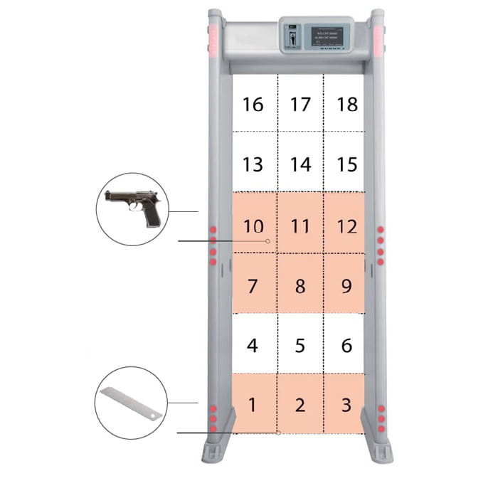 El arco detector de metales Detescan S180 es un arco multizona (hasta 18 zonas), capaz de detectar la presencia de metales con una gran sensibilidad (300 niveles de sensibilidad ajustable a la zona de detección).